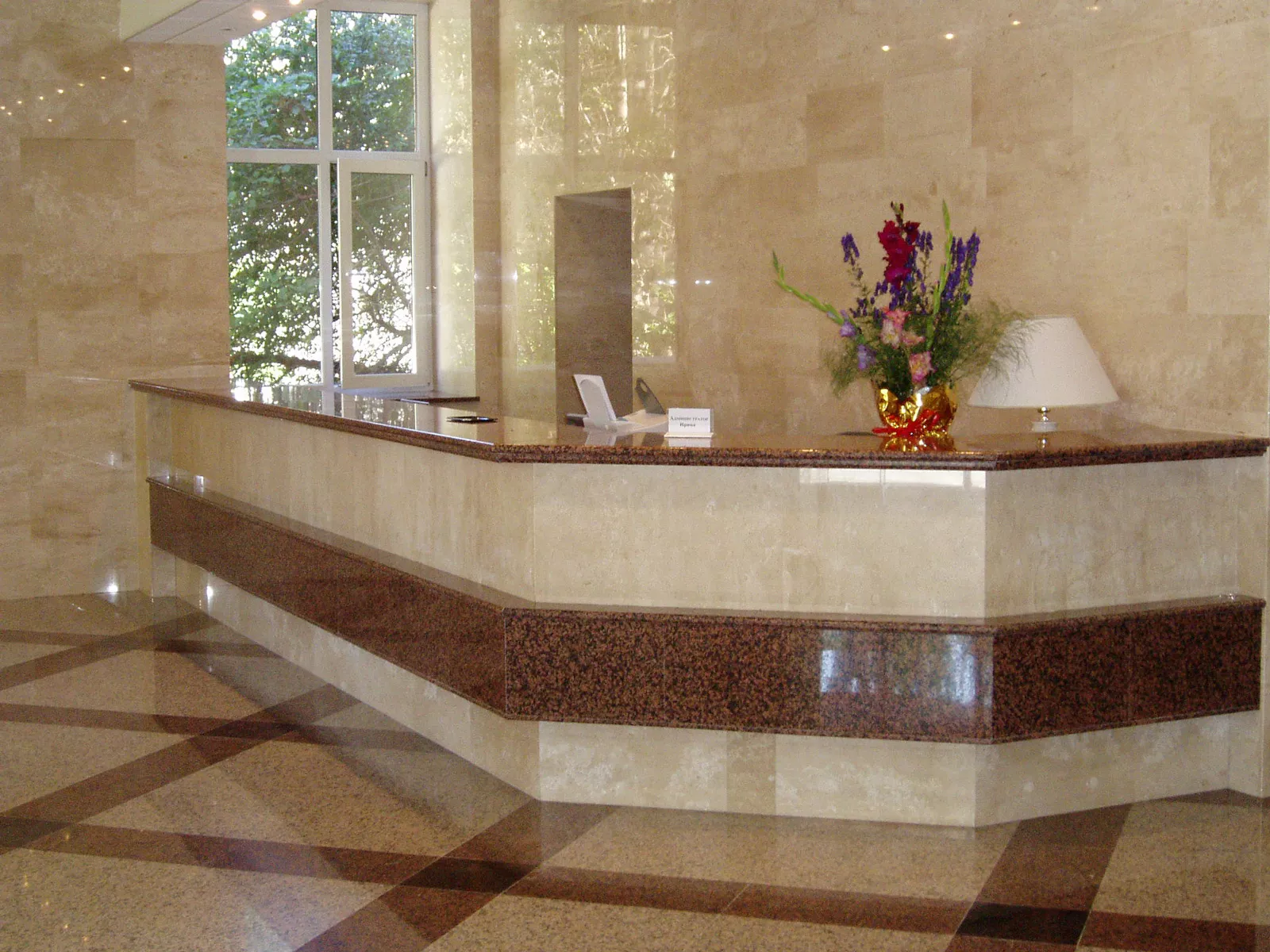 Камень обладает высоким процентом термоустойчивости и водоотталкивающими свойствами, что делает его популярным при работе с интерьерами ванных комнат и при работе с конструкциями, которым необходим высокий процент сопротивления влаге (фонтаны, декоративные водоемы, набережные).