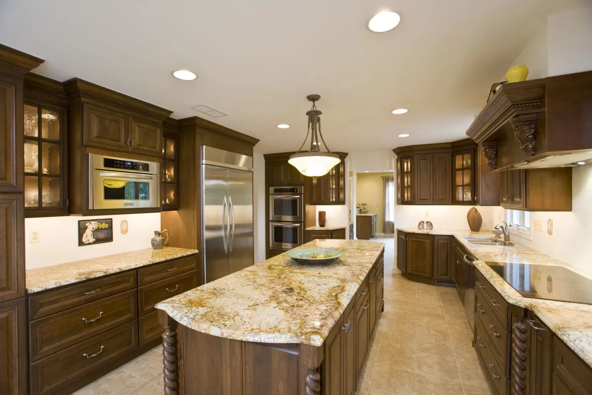 С эстетической стороны выделяется его золотистый оттенок и богатая фактура, способные украсить интерьер любой комнаты, будь то ванная, гостиная или кухня. Комната, выполненная из этого гранита, сразу наполняется теплым светом и уютной атмосферой.
