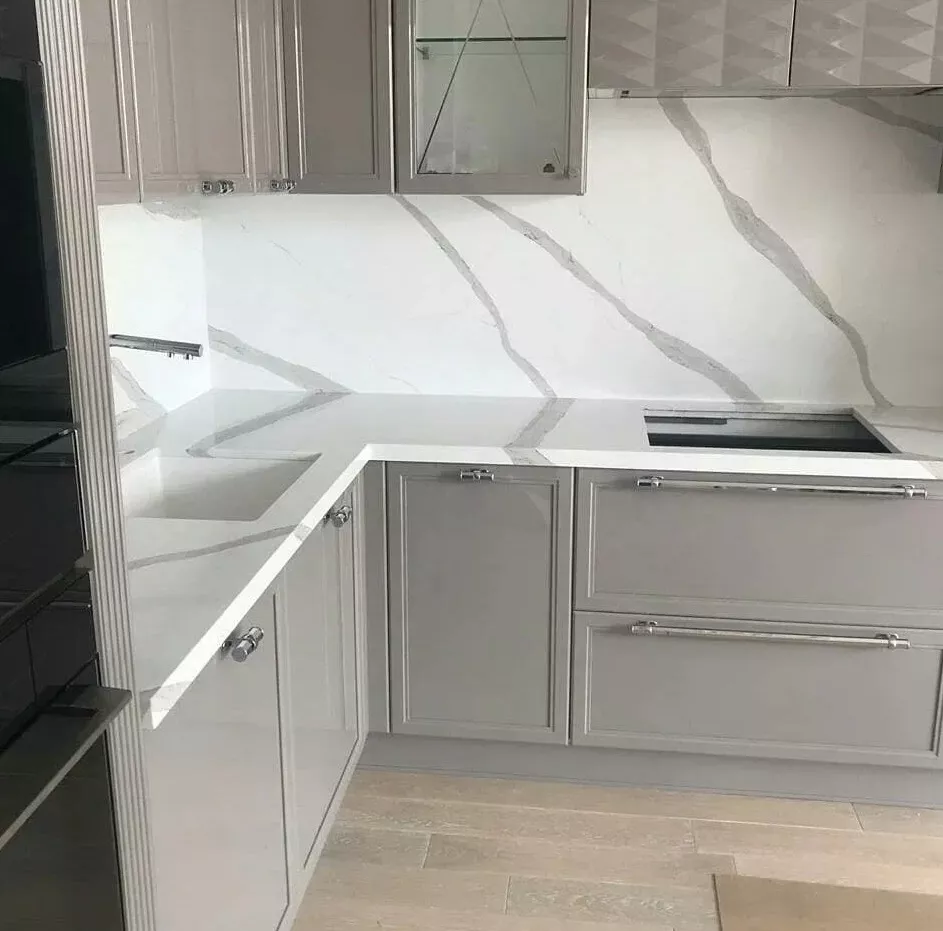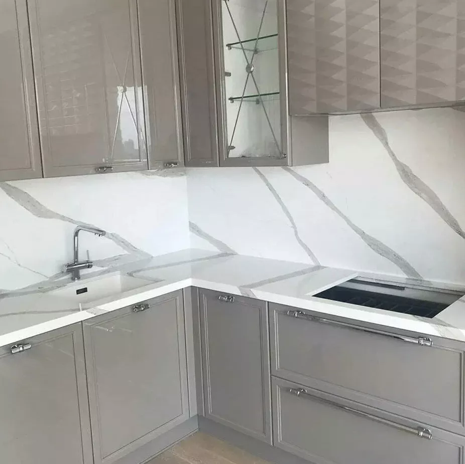Кварцевый агломерат Vicostone Arabescato BQ-8912 в наших проектах!