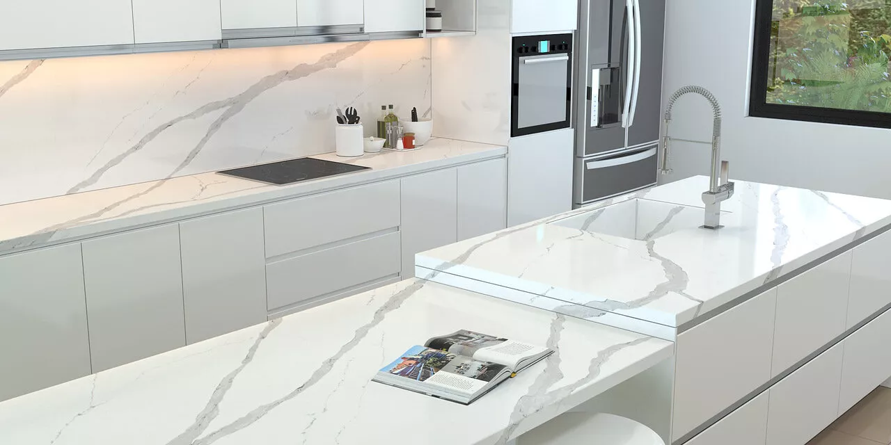 - Кварцевый агломерат Vicostone Arabescato BQ-8912