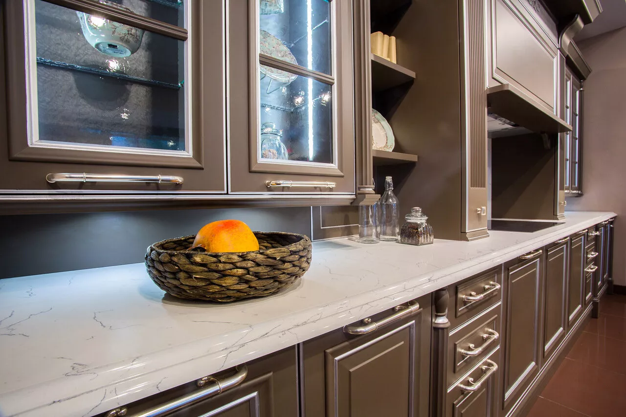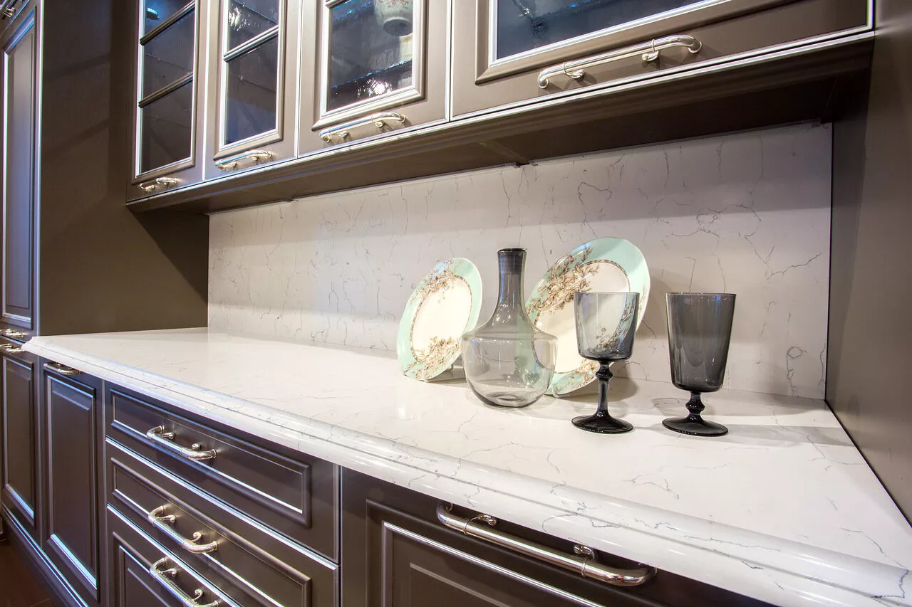 Кварцевый агломерат Vicostone Bianco Venato BQ-8440 в наших проектах!