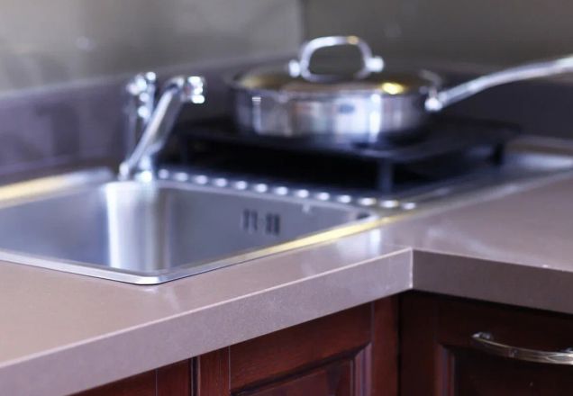 Кварцевый агломерат Vicostone Satinet BS-124 в наших проектах!