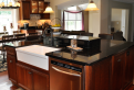 Эстетические и практические характеристики камня делают Блэк Гэлакси (Black Galaxy) популярным материалом для множества отделочных работ. Например, клиенты выбирают гранит для облицовки фасадов, цоколей, в садово-парковых решениях, в интерьере кухонь (столешницы, барные стойки, мойки), ванных (раковины, душевые кабинки), гостиных (подоконники, столы, полы), холлов (ступени).