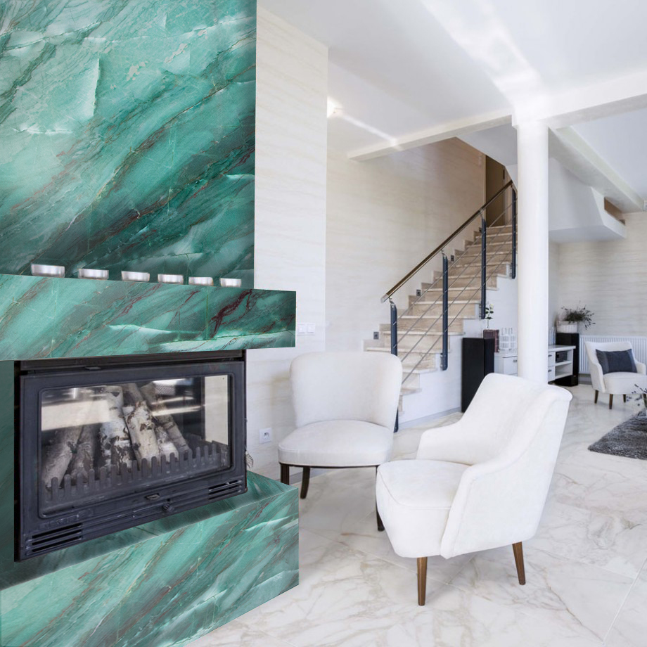 Эмеральд Грин (Emerald Green) — долговечный, надежный камень. Благодаря низкому % влагопоглощения, термоустойчивости, отсутствию реакции с внешними раздражителями и цветоустойчивости гранит широко используют в работах с интерьерами кухонь (столешницы, барные стойки), ванных комнат (душевые кабины), гостиных (подоконники, столы, полки).