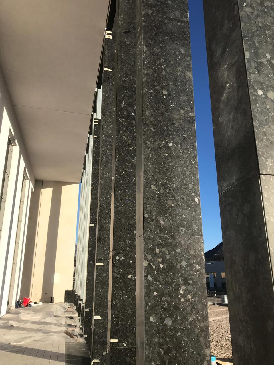 С практической стороны особенность Волга Блю в том, что камень имеет высокую износостойкость и устойчивость к высоким и низким температурам. Благодаря этому мастера используют гранит для работ и внутри помещений, и в наружной облицовке.