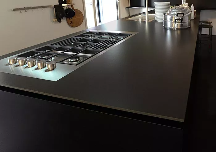 Dekton - это сложная смесь из более чем 20 минералов, добываемых из земной коры. Его производственный процесс является результатом многолетних исследований и совмещает изготовление стекла, современных фарфоровых и кварцевых поверхностей. Кристаллы кремния, циркона, силикат алюминия, красящие вещества измельчаются в порошок, после чего полученную смесь прессуют под воздействием высокой температуры. В результате спекания частиц и получается этот уникальный камень.
