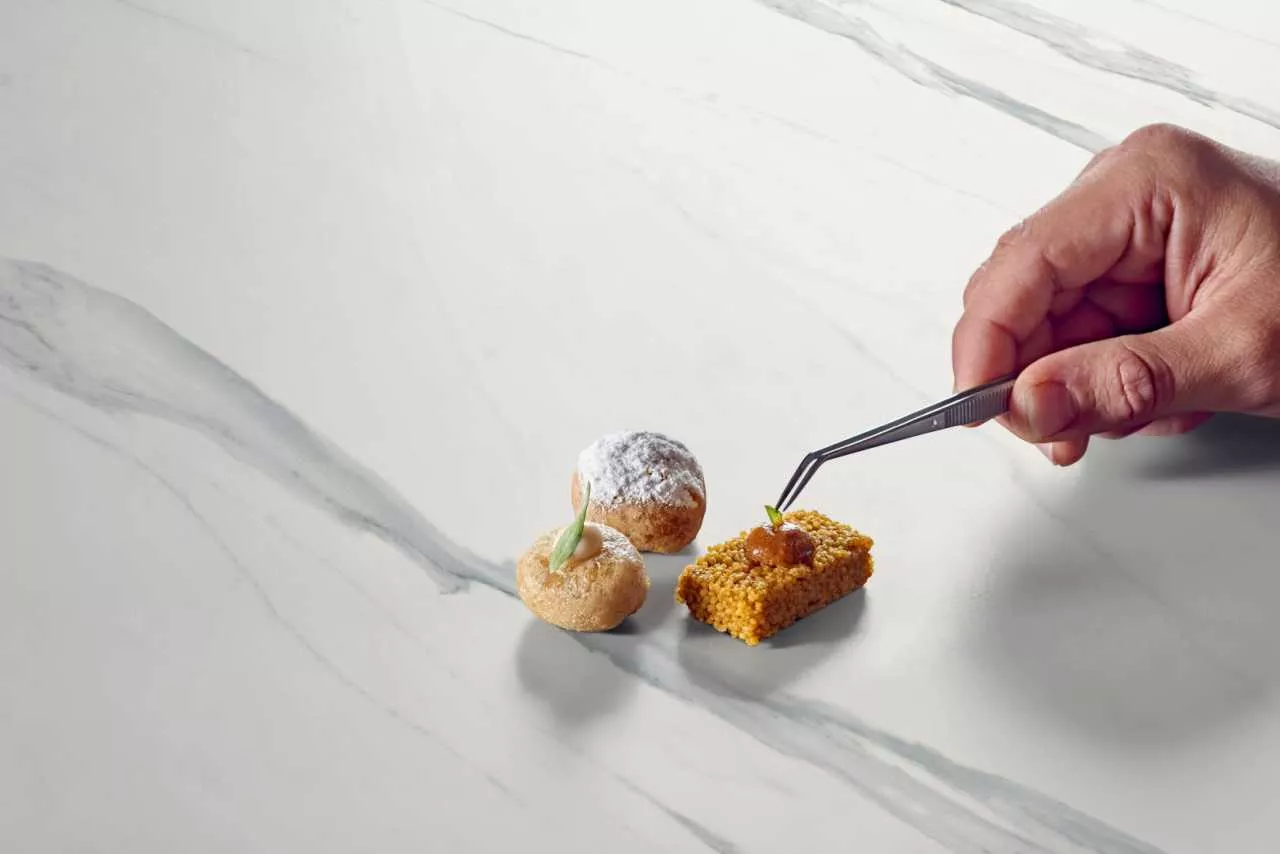 Dekton - это сложная смесь из более чем 20 минералов, добываемых из земной коры. Его производственный процесс является результатом многолетних исследований и совмещает изготовление стекла, современных фарфоровых и кварцевых поверхностей. Кристаллы кремния, циркона, силикат алюминия, красящие вещества измельчаются в порошок, после чего полученную смесь прессуют под воздействием высокой температуры. В результате спекания частиц и получается этот уникальный камень.