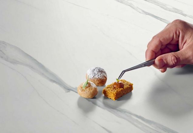 Dekton - это сложная смесь из более чем 20 минералов, добываемых из земной коры. Его производственный процесс является результатом многолетних исследований и совмещает изготовление стекла, современных фарфоровых и кварцевых поверхностей. Кристаллы кремния, циркона, силикат алюминия, красящие вещества измельчаются в порошок, после чего полученную смесь прессуют под воздействием высокой температуры. В результате спекания частиц и получается этот уникальный камень.