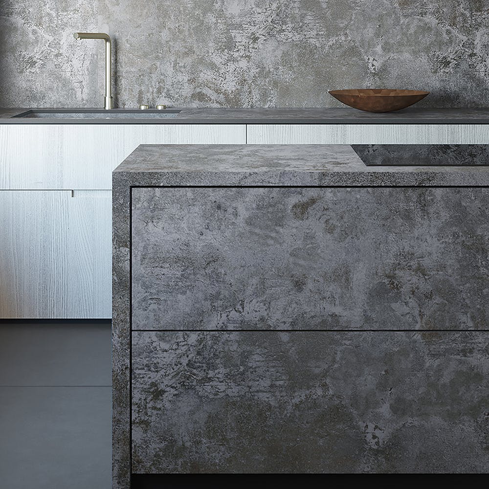 Dekton - это сложная смесь из более чем 20 минералов, добываемых из земной коры. Его производственный процесс является результатом многолетних исследований и совмещает изготовление стекла, современных фарфоровых и кварцевых поверхностей. Кристаллы кремния, циркона, силикат алюминия, красящие вещества измельчаются в порошок, после чего полученную смесь прессуют под воздействием высокой температуры. В результате спекания частиц и получается этот уникальный камень.