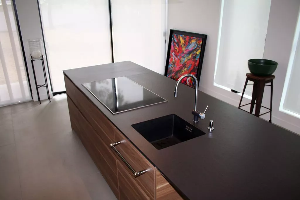 Dekton - это сложная смесь из более чем 20 минералов, добываемых из земной коры. Его производственный процесс является результатом многолетних исследований и совмещает изготовление стекла, современных фарфоровых и кварцевых поверхностей. Кристаллы кремния, циркона, силикат алюминия, красящие вещества измельчаются в порошок, после чего полученную смесь прессуют под воздействием высокой температуры. В результате спекания частиц и получается этот уникальный камень.