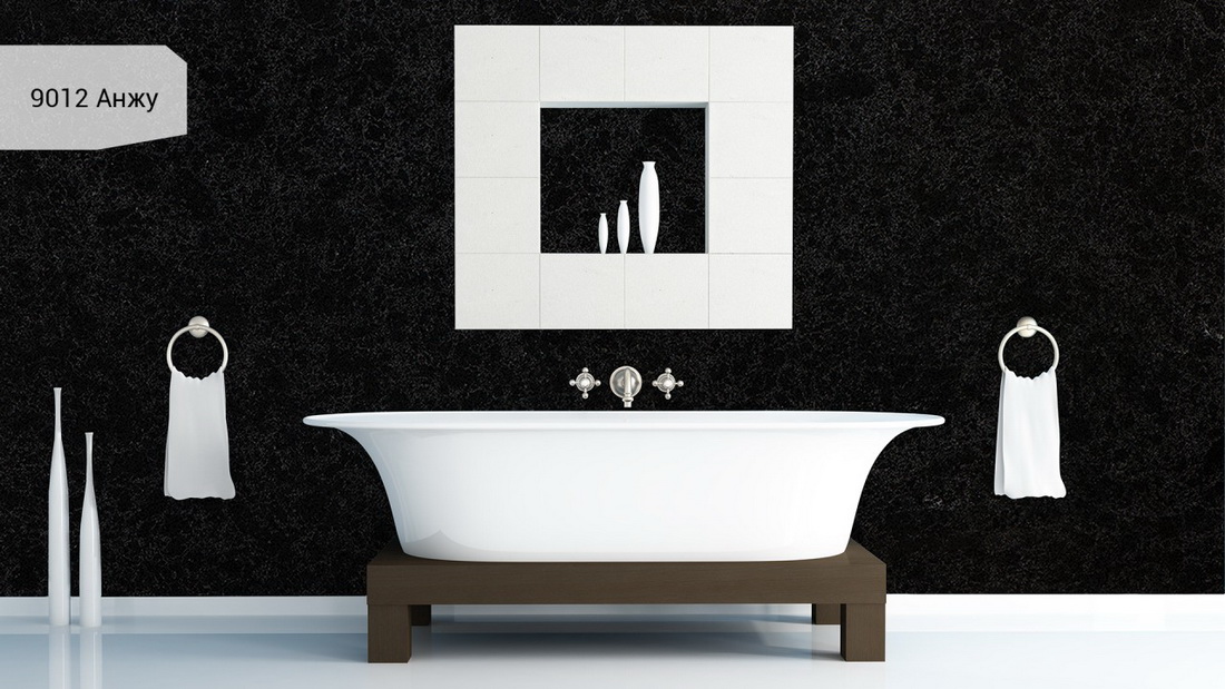 Аглокварц Avant Quartz Анжу 9012 - искусственный камень с поверхностью черного цвета. Относится к коллекции "Мраморная" в основе которой лежит точное повторение природного рисунка настоящего мрамора. Камень прекрасно подходит для отделки любых поверхностей: барных стоек, столешниц, моек, ступеней лестниц, подоконников, полов и т.п. Его можно использовать везде внутри помещений.