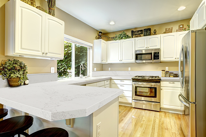 - Устойчив к появлению царапин. Кварцевый агломерат более стойкий, чем искусственный камень (акрил) или мрамор.