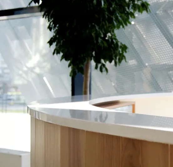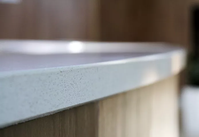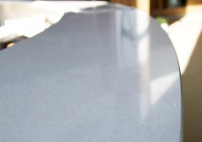 Кварцевый агломерат TechniStone Brilliant White - экологически чистый камень Как и все изделия из Technistone, он отличается высокой твёрдостью, отсутствием пор и трещин на поверхности и в массе, демонстрируя исключительные эксплуатационные качества. Камень легок в обслуживании, поскольку не впитывает влагу и запахи. Уход за камнем прост, для уборки понадобятся лишь мыло и салфетка. Нет необходимости вычищать столешницу, достаточно просто протереть её поверхность. При эксплуатации кварцевый агломерат ведёт себя подобно стеклу: его поверхность идеально гладкая и без пор.
