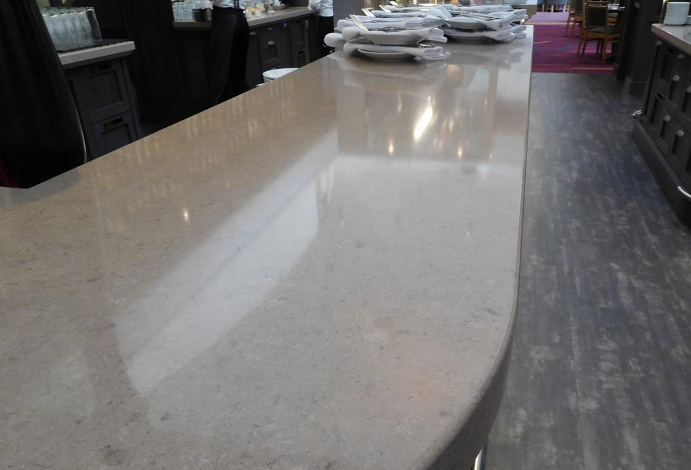 Кварцевый агломерат TechniStone Noble Ivory White - экологически чистый камень Как и все изделия из Technistone, он отличается высокой твёрдостью, отсутствием пор и трещин на поверхности и в массе, демонстрируя исключительные эксплуатационные качества. Камень легок в обслуживании, поскольку не впитывает влагу и запахи. Уход за камнем прост, для уборки понадобятся лишь мыло и салфетка. Нет необходимости вычищать столешницу, достаточно просто протереть её поверхность. При эксплуатации кварцевый агломерат ведёт себя подобно стеклу: его поверхность идеально гладкая и без пор.