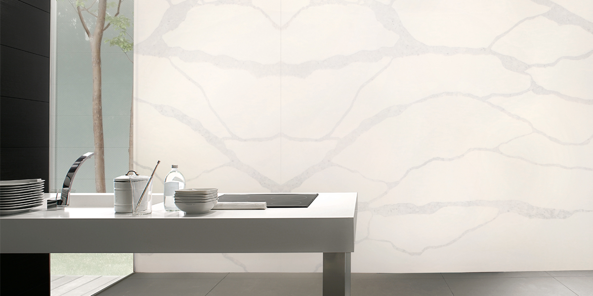 Искусственный камень с поверхностью белого оттенка. Узор на камне выглядит спокойно, но в тоже время динамично. Камень относится к коллекции Сalacatta олицетворяющей натуральный мрамор с тончайшими серыми прожилками сорта Калакатта.