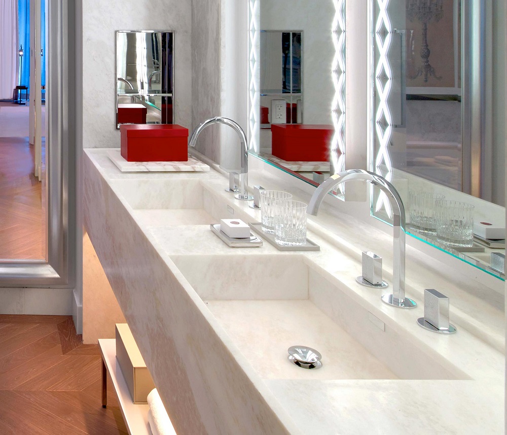 Мрамор Намибия Бьянко идеально подходит для облицовки горизонтальных и вертикальных поверхностей, стен, колонн и полов, подоконников, ступеней лестниц, столешниц. С помощью этого минерала создают красивейшие каминные порталлы, столешницы и другие элементы интерьера.