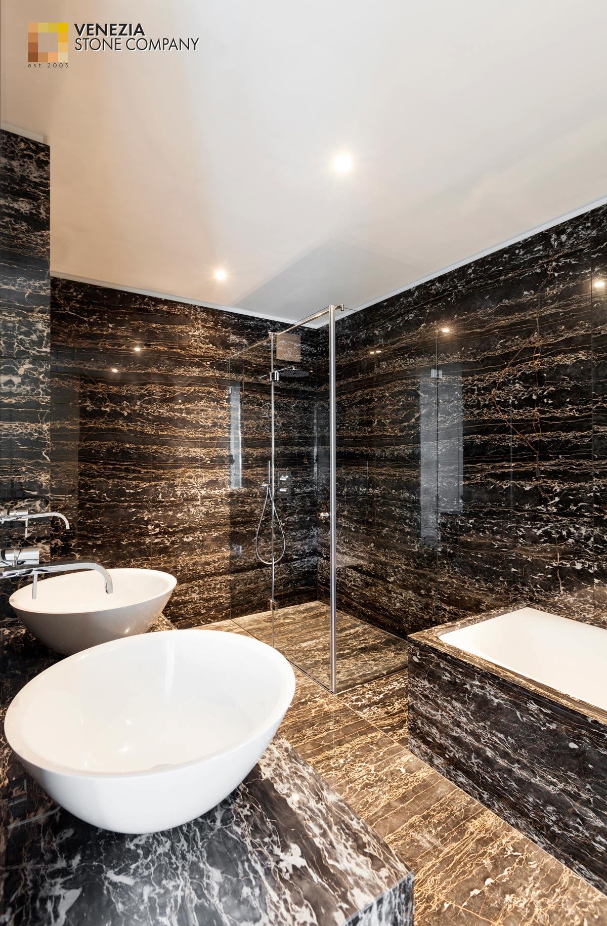 Неро Порторо Экстра – эксклюзивный черный мрамор, добываемый в итальянской провинции. Уникальность этого материала заключается в том, что в нем шикарный темный оттенок разбавлен сочными желто-золотыми нитями. Золотистые прожилки придают этому роскошному мрамору поистине королевский лоск.