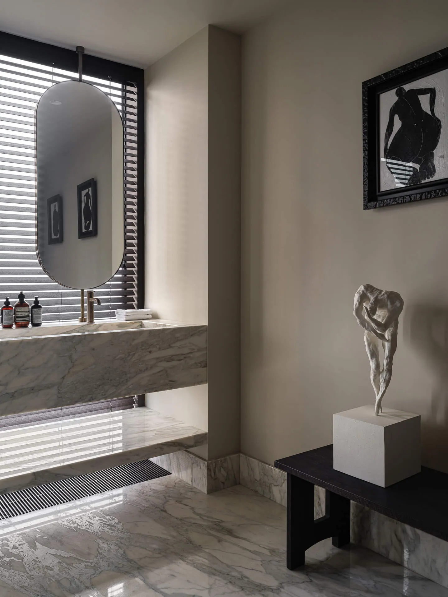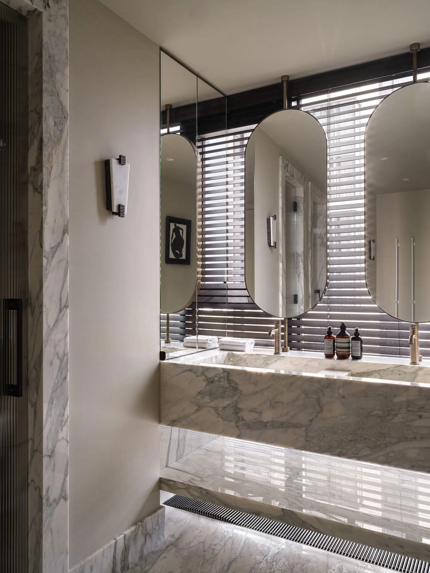● Премиальные материалы — мрамор, качественная фурнитура, продуманная отделка.